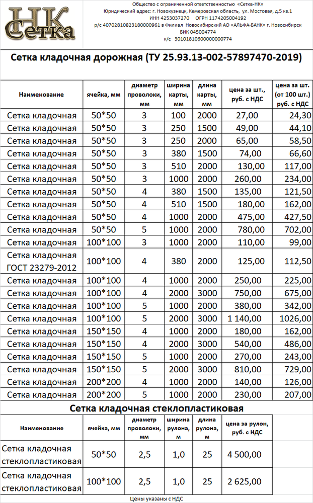 Сетка кладочная